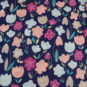 Spring Floral Navy Polycotton