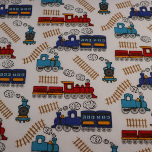 Trains White / Red Polycotton