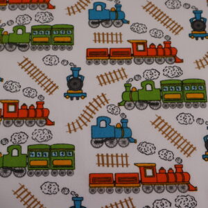 Trains White / Orange Polycotton